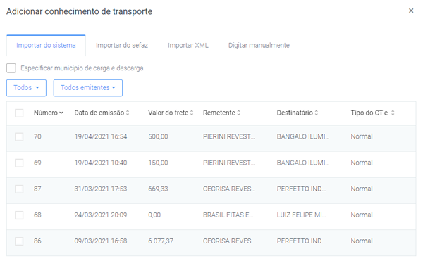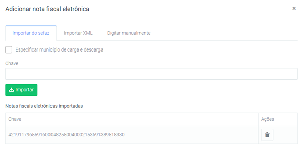 Emissão de MDFe, carga própria ou globalizado, através da importação dos XMLs dos NFes ou via consulta ao SEFAZ pelas chaves de acesso.