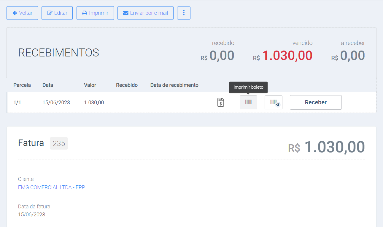 Ao gerar faturamento para o cliente, é possível de forma automática gerar Contas a Receber e Boleto, após esse processo, o sistema se encarrega de enviar o Boleto para o cliente, juntamente com os documentos envolvidos.