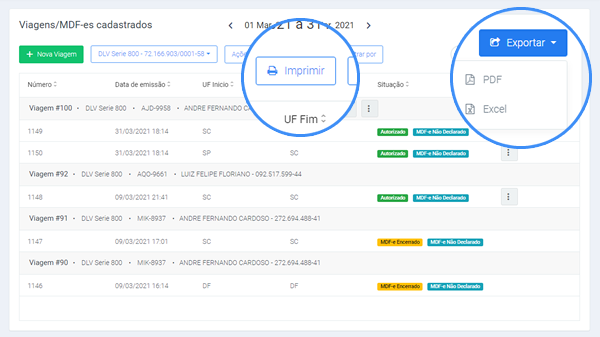Todos os dados requeridos pelo MDFe, como por exemplo: Origem, destino, peso, produto predominante, etc, são preenchidos automaticamente, gerando redução da carga de trabalho e evitando erros de digitação, tornando assim todo o processo mais rápido e seguro.